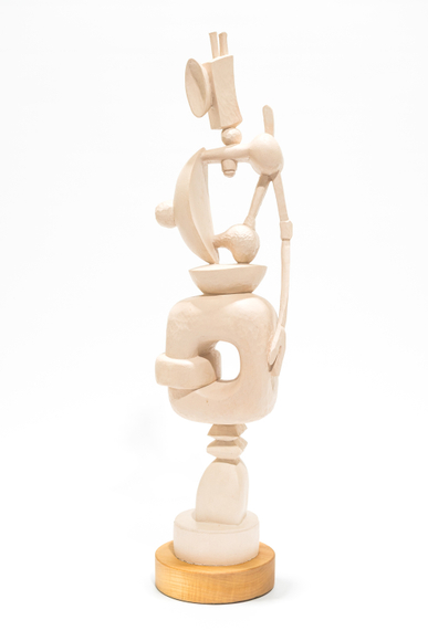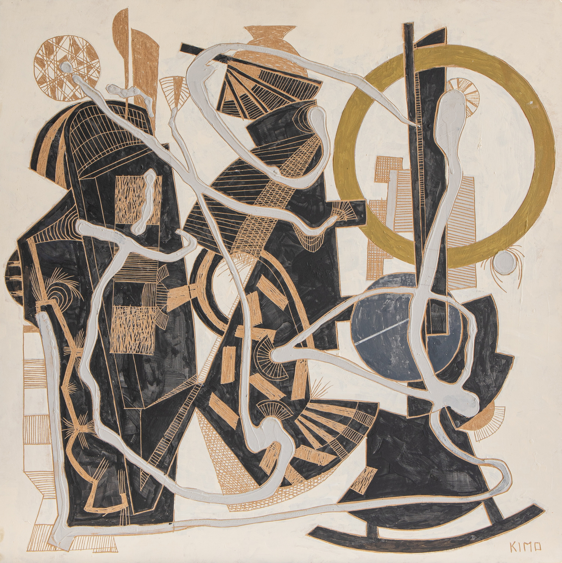 Born in Lawrence, Kansas in 1950 and largely self-taught, Kimo Minton began studying art at 22 while supporting his family as a carpenter. His work is shaped by a long relationship with jazz and early modernism, which together inform what he calls “immediate improvisation.” Working across sculpture, carved wood reliefs, painting, and works on paper, he moves through a sequence of decisions in which each mark guides the next, allowing color, texture, pattern, and form to establish the structure of the composition. His work has been placed in a lineage that includes Stuart Davis and Wassily Kandinsky, artists who explored the structural and musical dimensions of abstraction. Minton’s practice reflects a commitment to craftsmanship, material engagement, and what he describes as the “magic of the hand.”
