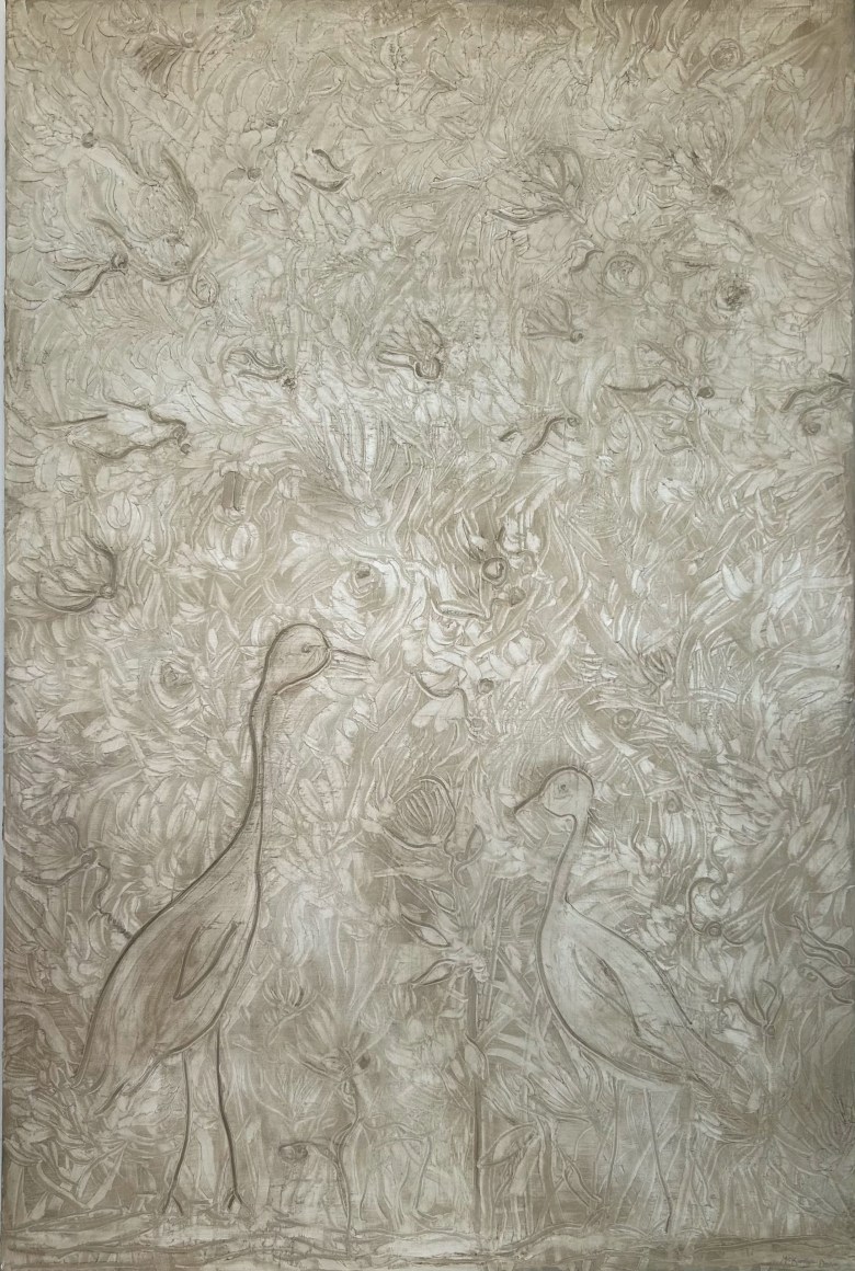 Through her textured compositions, Dove invites viewers to experience the tactile and visual richness of her creations, elevating her work beyond the canvas into a realm of timeless design.