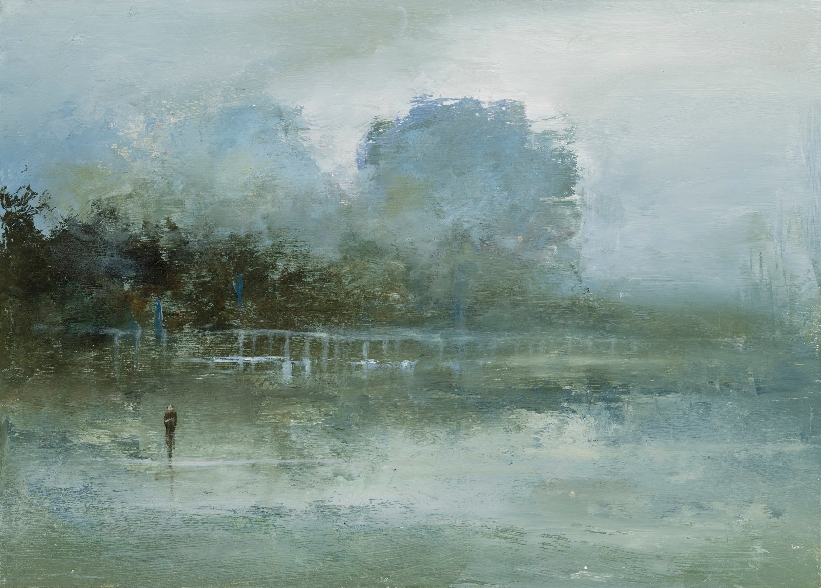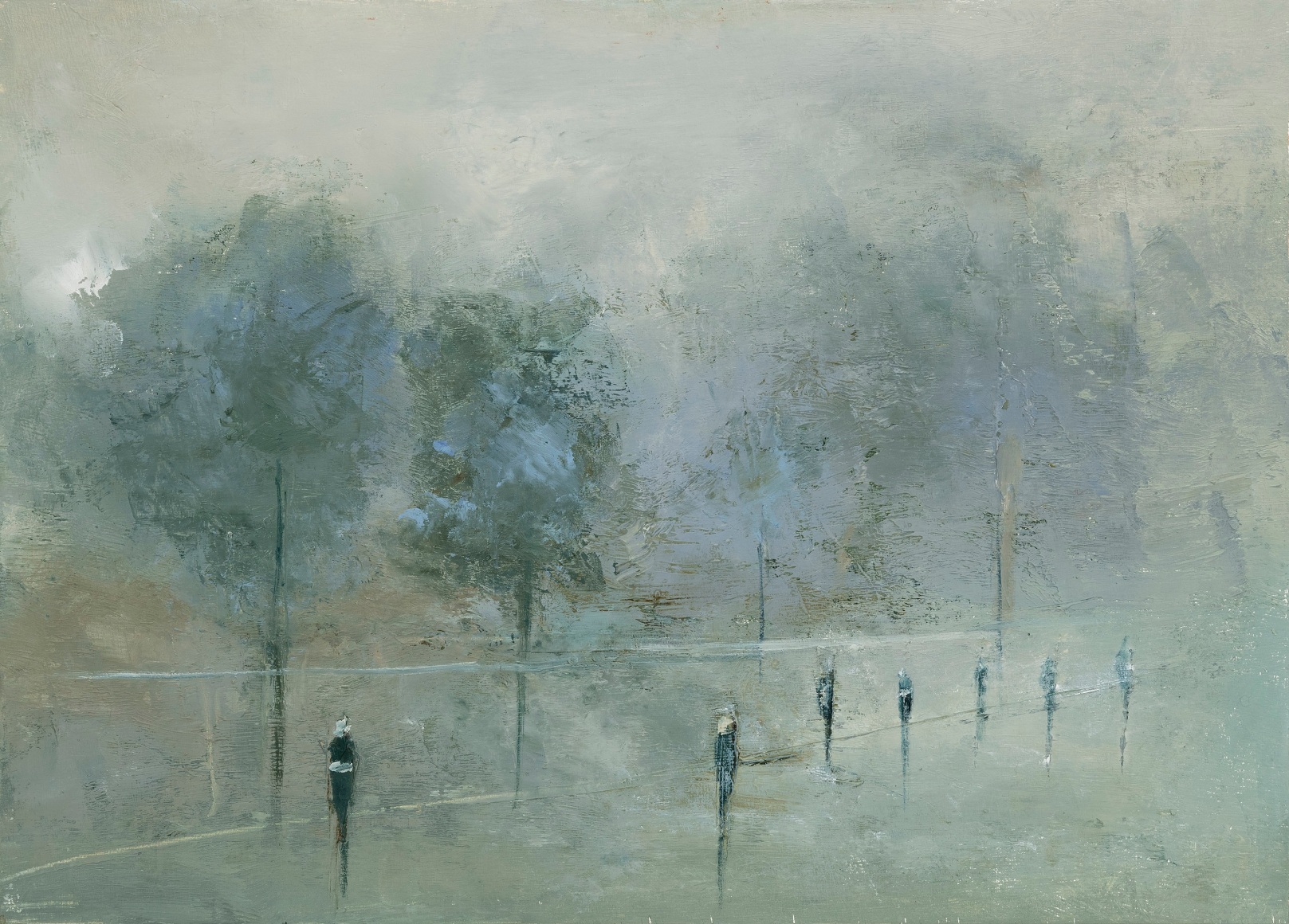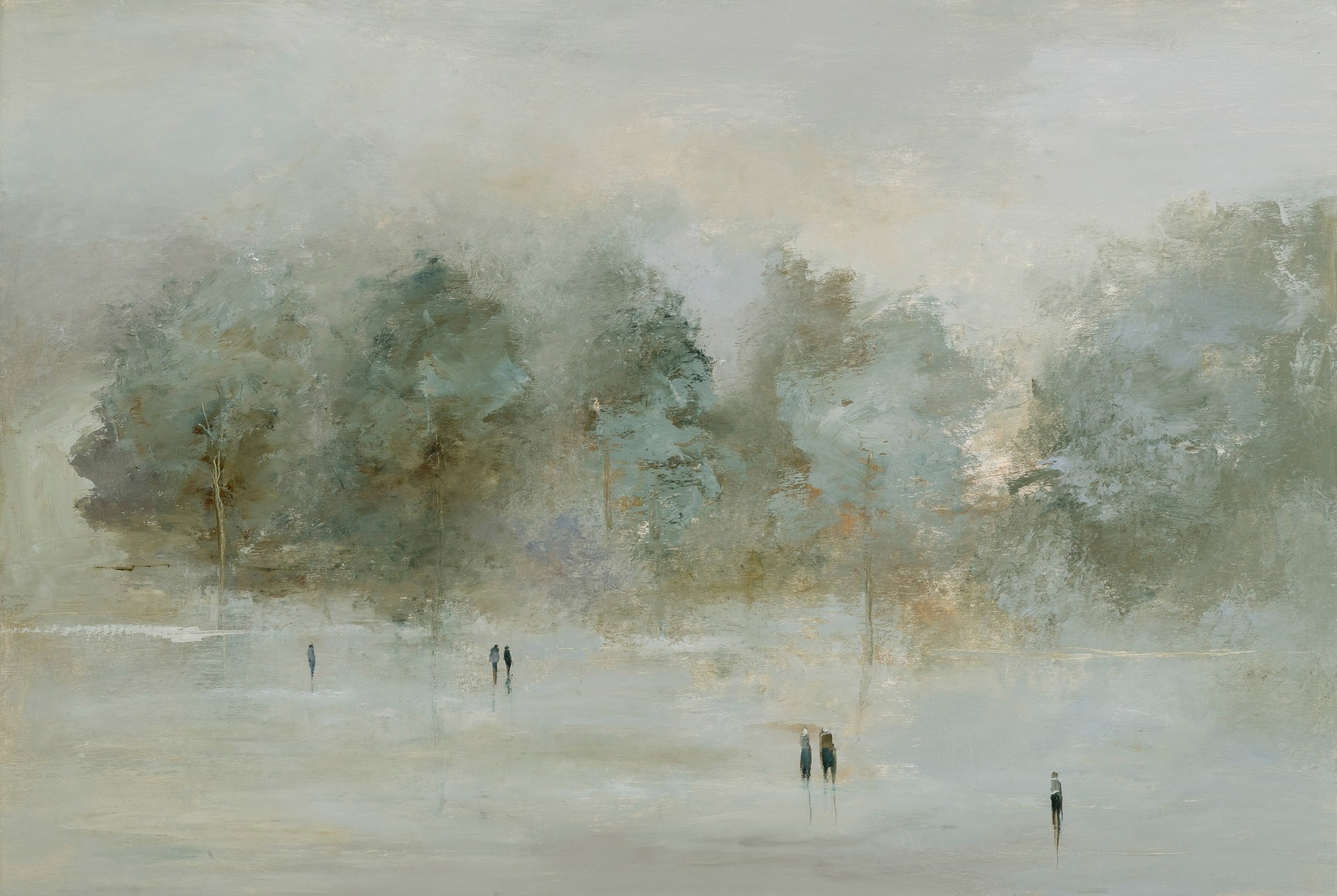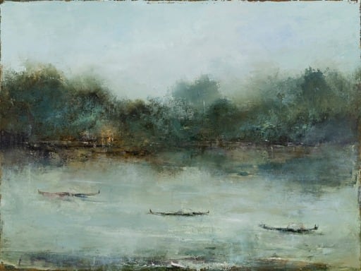 Known for her gestural handling of oil paint on linen, Jodoin captures a timeless, dreamlike atmosphere where muted palettes and fluid brushwork invite viewers to construct their own narratives. She describes her art as a reflection on “the very brevity of life itself,” often exploring themes of otherness—different places, times, people, and species—while using paint as an elemental force to evoke memory and emotion.