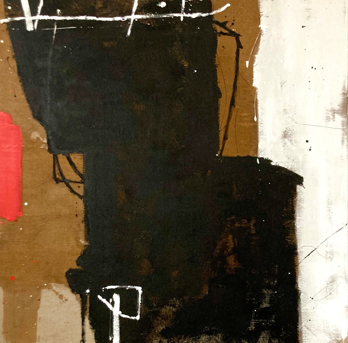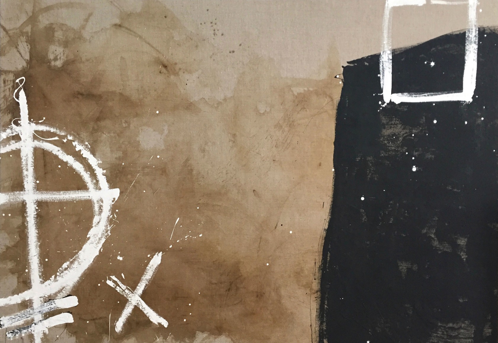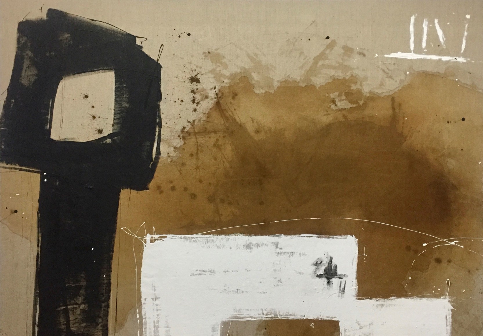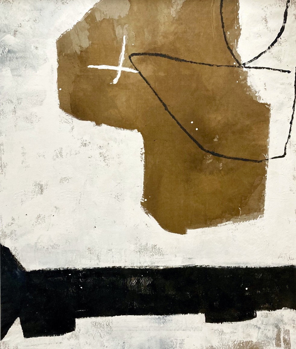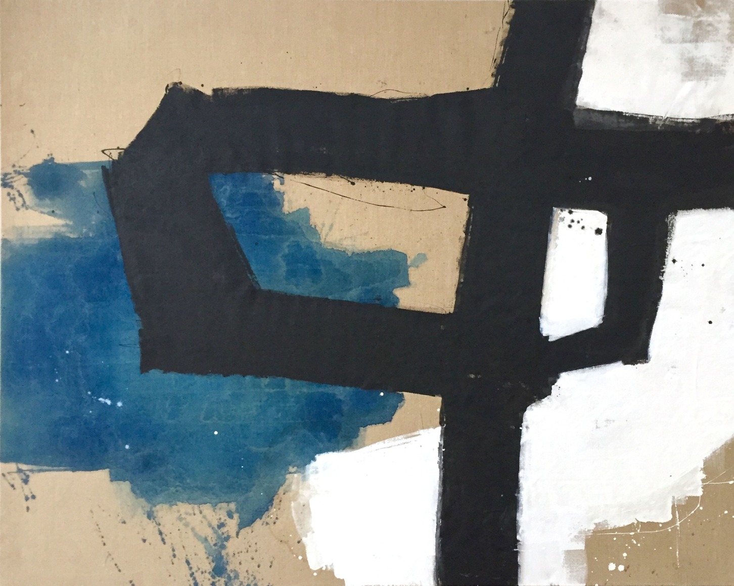 Morrison works on the floor (which adds a physicality to her process) on oversized rolls of linen or paper. While dominant forms and basic composition are often pre-determined she is relaxed with the brush, inviting the accident and instinctually rerouting course to accommodate it.
