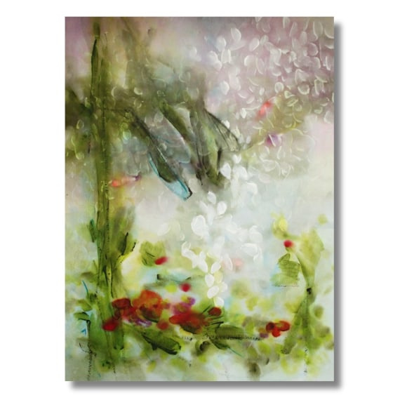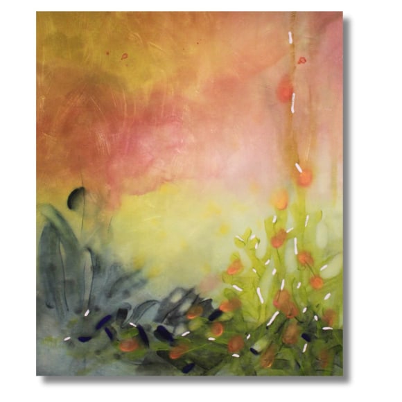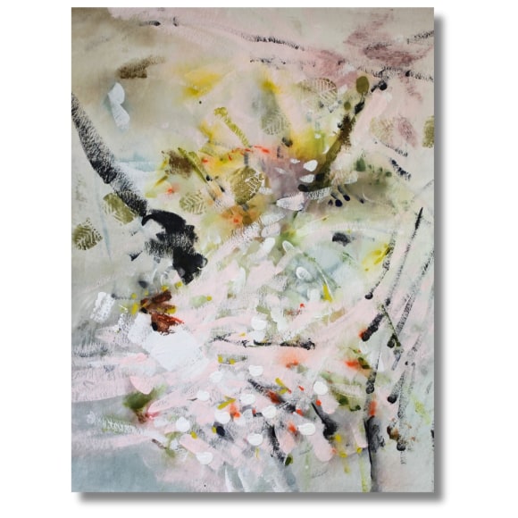 Today, Mel works across encaustic, acrylic, pastel, gouache, and oil stick, embracing a vibrant, gestural approach. Her abstract compositions are built from layered lines, color fields, and expressive mark-making that suggest, rather than define, forms—hinting at botanicals, movement, or mood. Rooted in Japanese aesthetics and a lifelong love of animals and the outdoors, her paintings reflect a deep sense of play, romance, and reverence for nature.