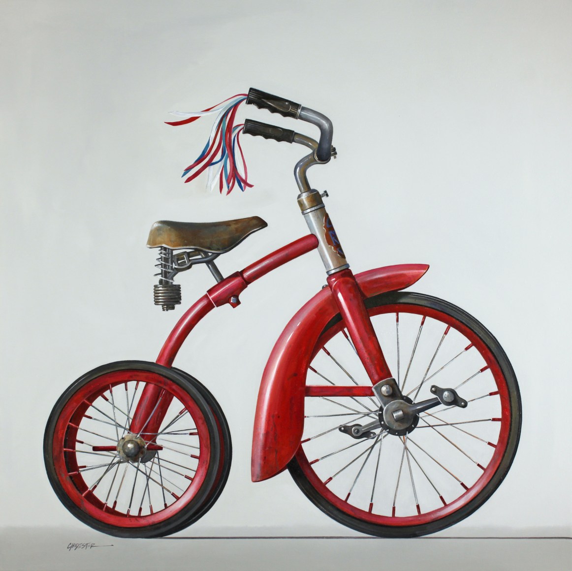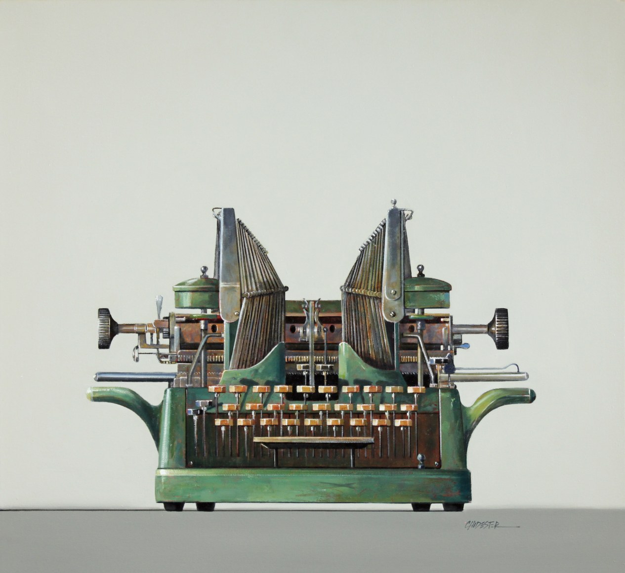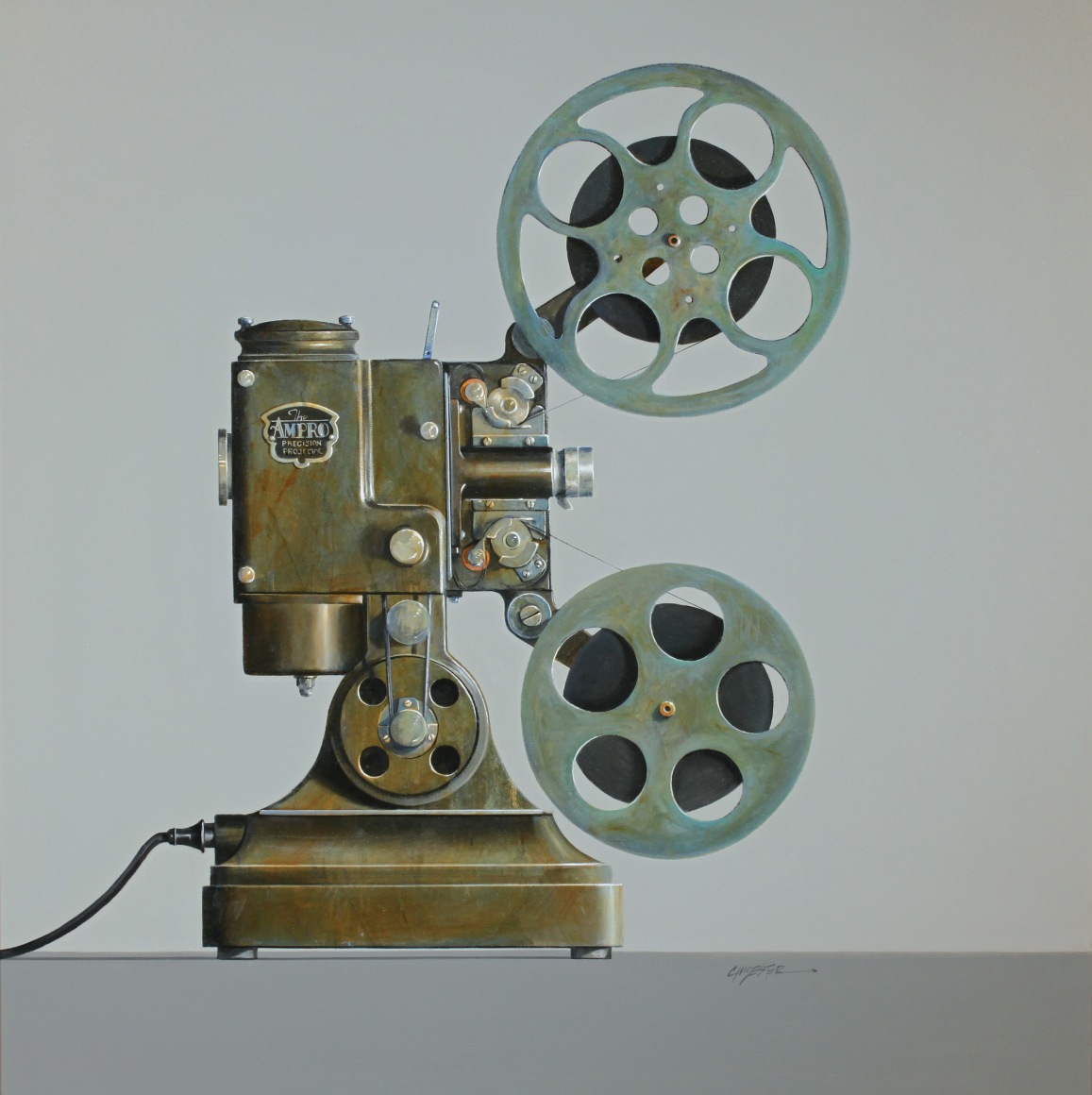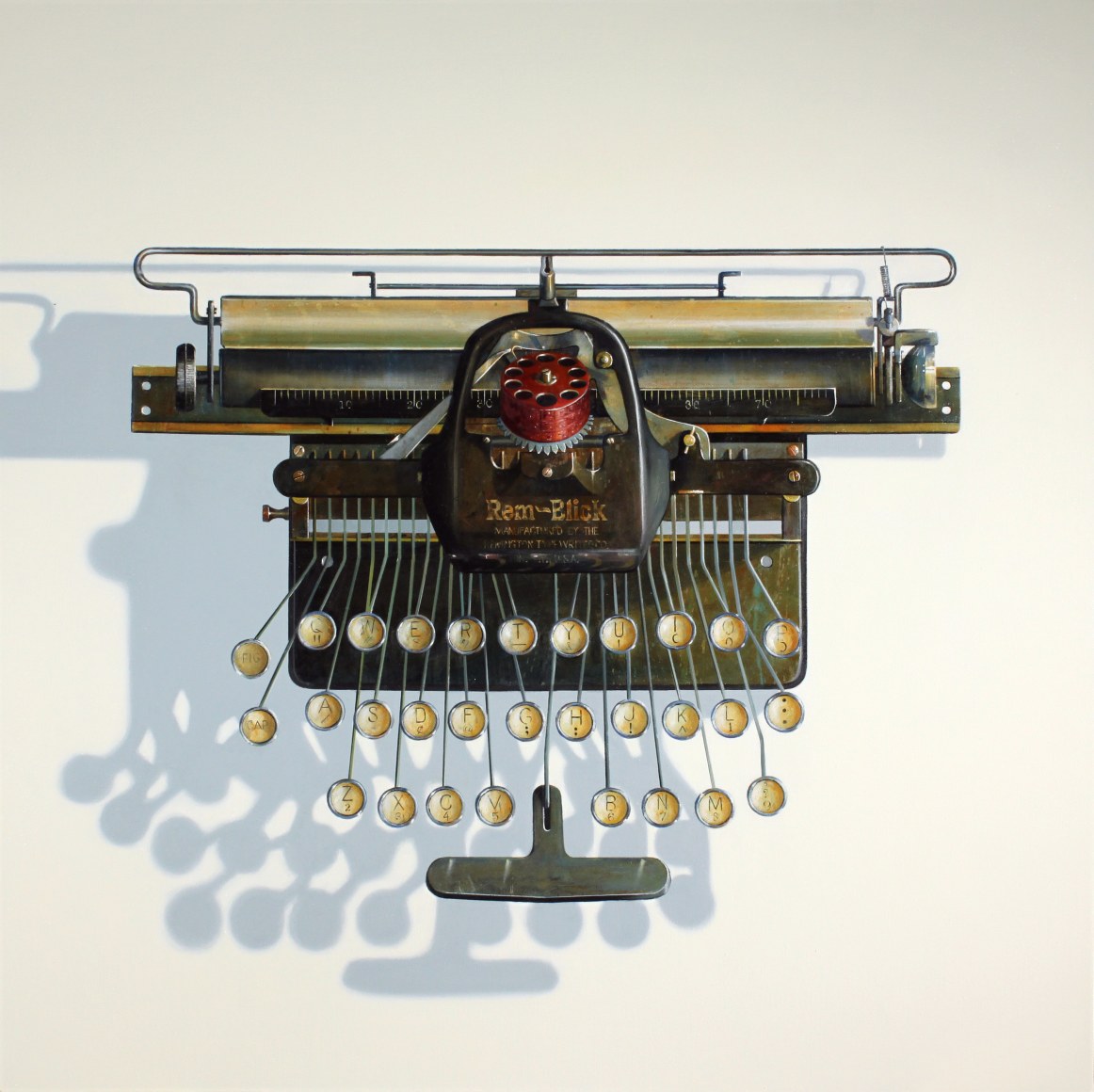 In her gorgeous photo-realistic still-lifes, American oil painter Wendy Chidester pays homage to lost relics of the past. Artifacts like vintage cameras and projectors, 40’s trunk luggage, bubblegum machines, old telephones and typewriters are represented nostalgically in her work. She frames these objects as icons, memorializing the color and ingenuity of the past.