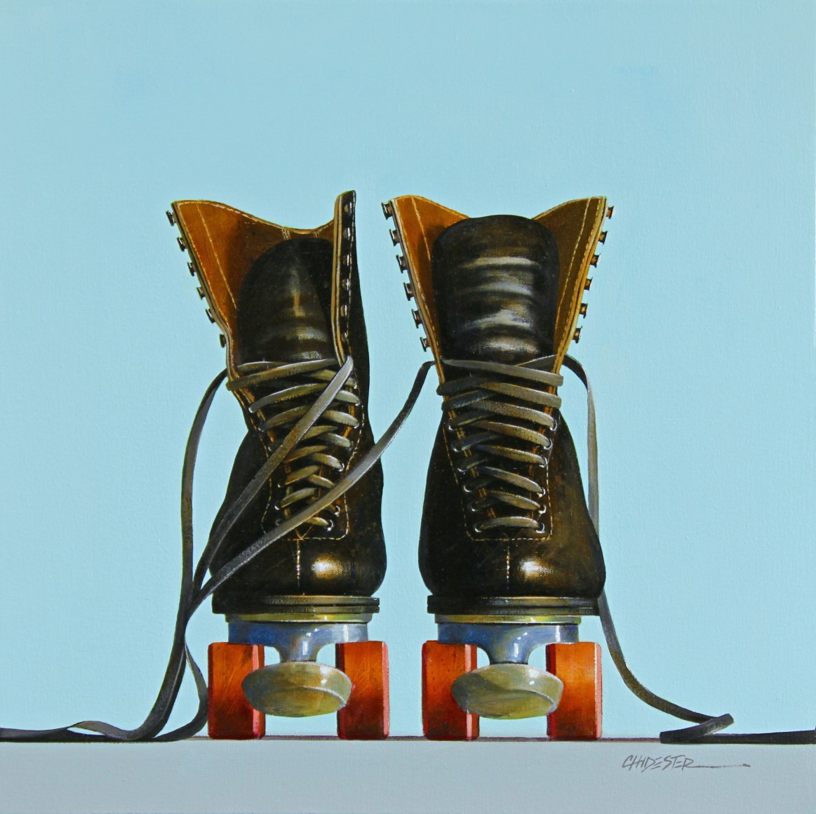 Chidester visited a local antique store and found herself drawn to a particular vintage camera. She ended up borrowing that camera, and later other objects, to use for newly-inspired still-lifes. In her artistic process, she paints with oil, and then scratches and glazes to create a realistic aged effect. Chidester now travels the country searching for antique treasures to paint. She has won an array of prestigious awards, including First Place at the 85th Spring Salon at Springville Museum of Art, First Place at the 2007 Annual “Inspired by Carbon County” Helper Arts Festival Show, and Best of Show at Deseret News 17th Annual Art Show.